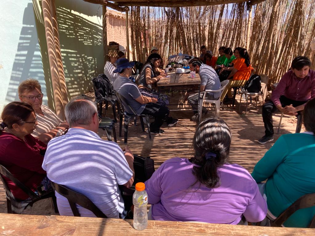 Encuentro con la propuesta de que se reúnan entorno a una manta tejida por mujeres de Jague para que bordando todos en un mapa su identidad. Debieron posicionarse en el mapa de la región, saliendo de sus localidades, pero abrazando su Identidad a través del bordado.